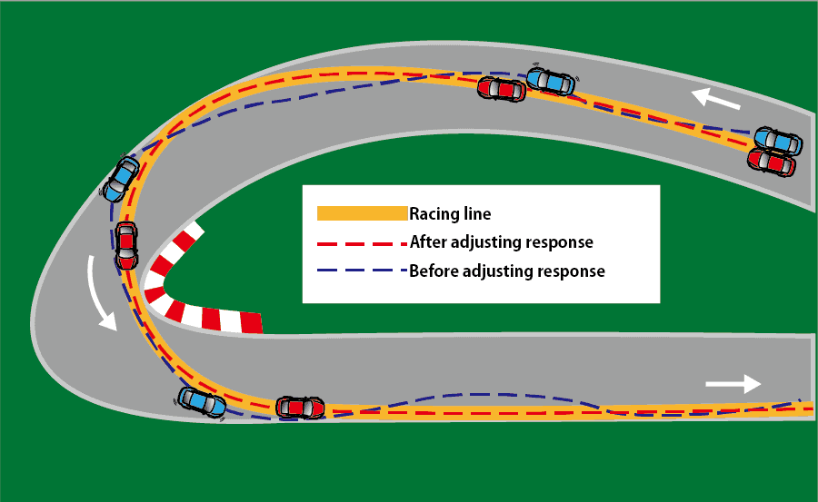 It’s like making the suspension a little harder while keeping the transmit speed the same. As a result, in categories that do not require much sensitivity, it is possible to transmit the driver’s inputs more directly to the vehicle, leading to an improved sense of stability.